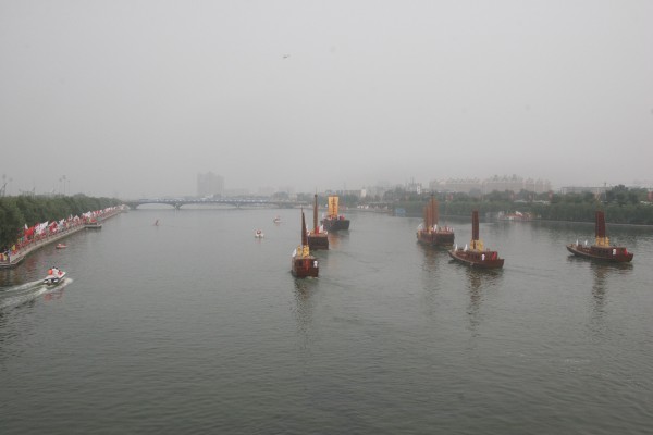 火炬传递当天,主船“安福舻”启动驶离一号码头后,又有另外5艘“护跑”仿古船驶出,6艘大船浩浩荡荡,排成“品”字形,向着现代的东关大桥行进。参加这场传递的22名火炬手中有14人是在水上进行传递的,水上传递路线长1400米,途经帆影广场、奥体公园、鱼跃广场。传递现场,观众挥舞国旗和奥运五环旗,运河两岸的大合唱、太极扇、秧歌、花会等多种形式的文艺表演也纷繁呈现,欢乐祥和的气氛弥漫在运河上空,让“安福舻”不仅承载着漕运文化的历史记忆,更成为传递奥运精神的重要载体。