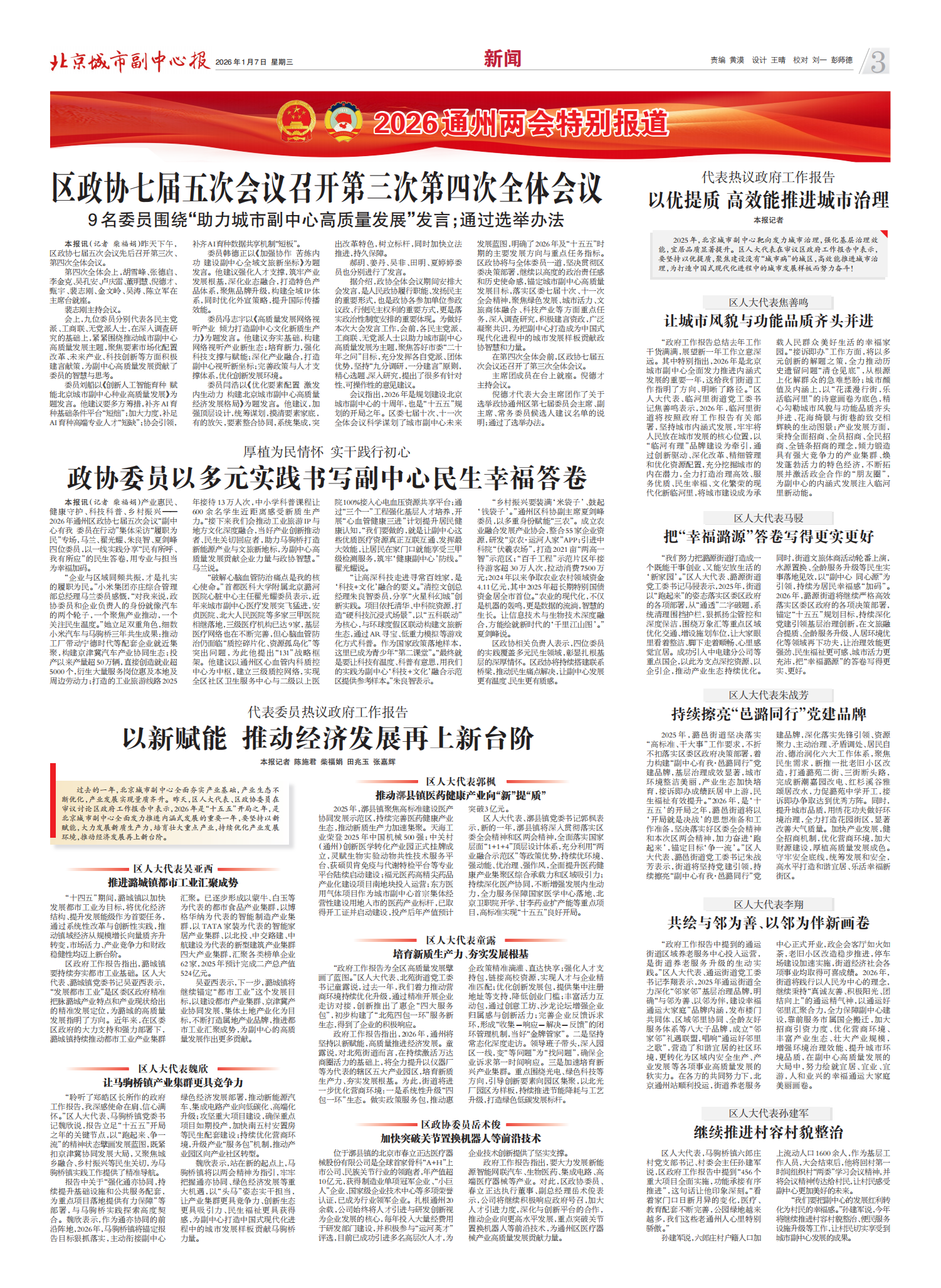 昨天上午,通州区第七届人民代表大会第七次会议开幕。记者 常鸣/摄本报讯(记者 陈施君)昨天上午,通州...
