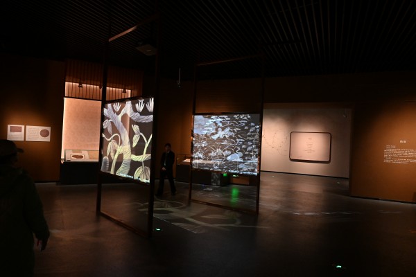 展览大厅内摆放着三个多媒体屏幕,策展人利用新技术“复活”展品,让原本静态的纹样变成了一段段影片,丰富了观众的参观体验。