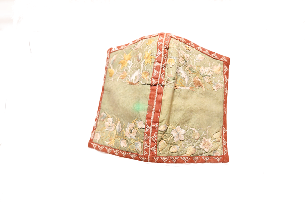 另一件彩绣鱼形粉线包为两片织物缝合在一起,绣出了鱼的头、鳍、尾、鳞等部位,虽然造型稚拙,但富有生活情趣,应为当时女子针线笸箩中的必备之物。孙珂说:“这两件物品我很喜欢,很有家中长辈制作的风格。或许也是当时女工们利用织物边角料制作的。”
