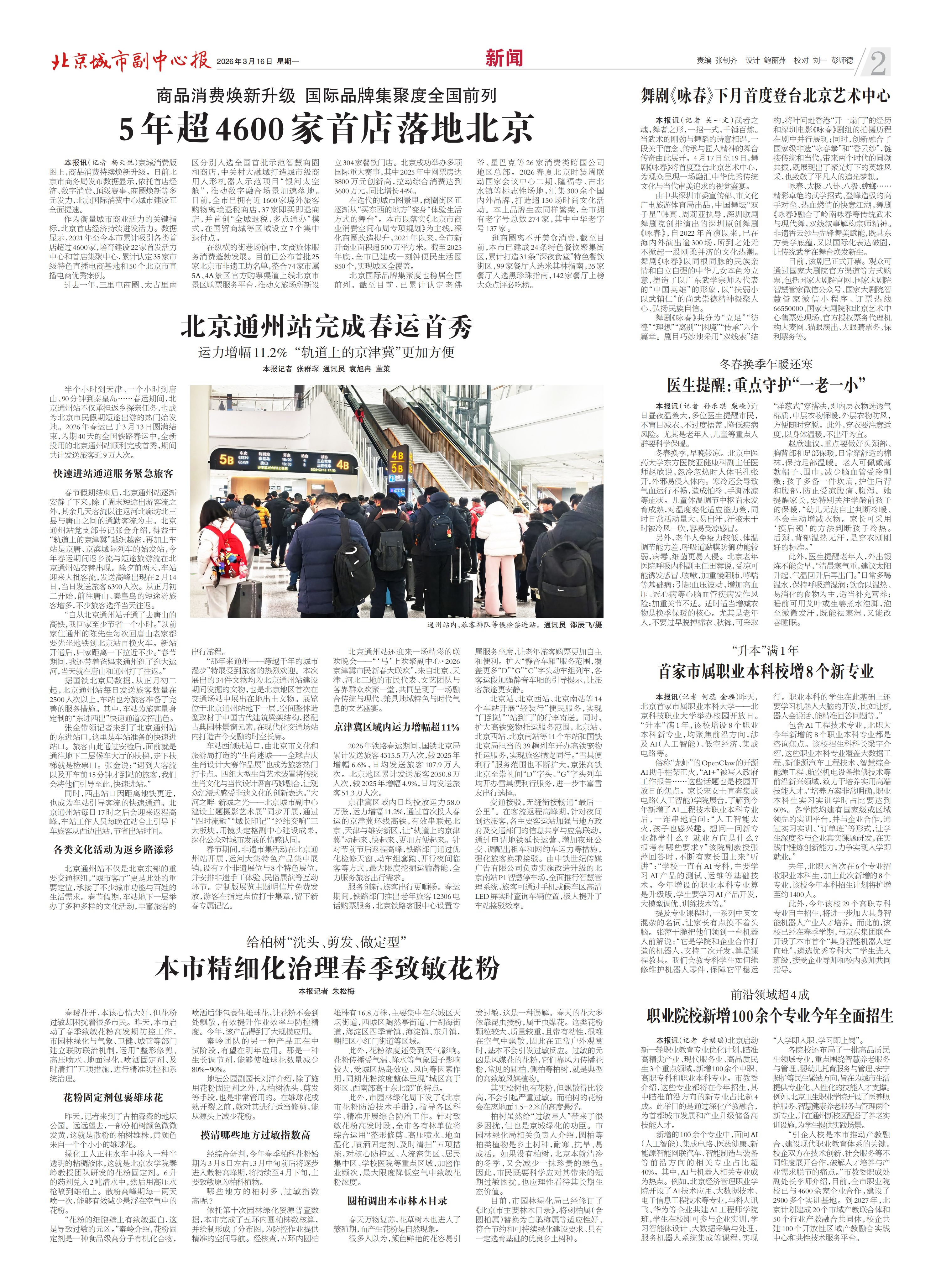 旅客通过群芳枢纽换乘7号线。记者 张嘉辉/摄本报讯(记者 赵鹏 张嘉辉)春回大地,万物复苏。京杭大运...