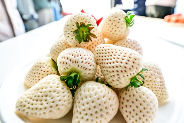 不远处的另一排栽培架上,京彩3号则展现出截然不同的模样。冬日光照较弱时,它的果实是纯粹的白色,随着温度升高、光照变强,果皮会渐渐晕开淡淡粉色,故而得名“京彩”。“京彩3号是在我们培育的白雪公主品种基础上,经过几代改良得来的,它的糖度高、香气浓,糖酸比适宜,吃起来甜而不腻。”孙健摘下一颗粉白相间的京彩3号,咬上一口,纯白的果肉汁水欲滴,“目前它在北京市内已经拥有了不少忠实消费者,大家都很喜欢这种颜值高、口感好的特色品种。”